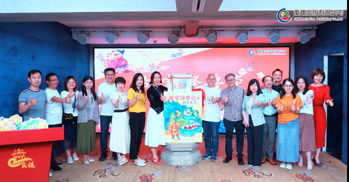 童趣出版有限公司總經理史妍(左一)、作者常怡(左二)、插畫作者譚諾(左三)、童趣出版有限公司總編輯劉玉一(右一)為《故宮怪獸談》揭幕。