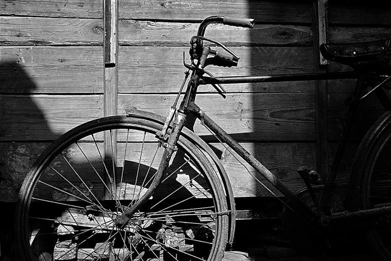 騎車的瘋狂一般是在母親因生氣而刺耳的點名聲中結束的。母親們在田間勞作一天,回家又操持半晌廚房,早就消磨光了身體里所有的精力與耐心,最后不得不靠燃燒怒火的力量來召喚我們去吃飯。那天是我剛學會“掏雀兒”不久,自行車一路搖晃,一路飛駛,便不可避免地沖進了門外的那個大灰坑里。顧不得一嘴的炕灰,顧不得小腿鉆心的疼,一骨碌爬起來看車子。車子的鏈條卻轉不動了,連接腳踏的曲柄摜歪了,靠在平叉上。在父親的怒吼聲里,拇指粗的鞭把子狠疾地落在尻子上,那身上唯一的一處厚肉上瞬間隆起了同樣拇指粗的鼓棱,鉆心地疼痛刺激著淚腺,試圖用可憐的淚水減緩火辣辣的疼感。晚上才發(fā)現(xiàn)一條褲腿也被撕了個大口子,讓疲憊得連睜眼皮都吃力的母親又是一頓罵。也不怪父親的暴怒,當時的自行車可是家里的一位重要成員。對,它不是工具,是成員,就像一頭?;蛞黄ヱR。它不僅僅是馱著父親、哥哥姐姐們去田里勞作,在歉收的年景,它還是父親最忠實的伙伴,馱著父親到處為家里的七八張嘴跑生活。