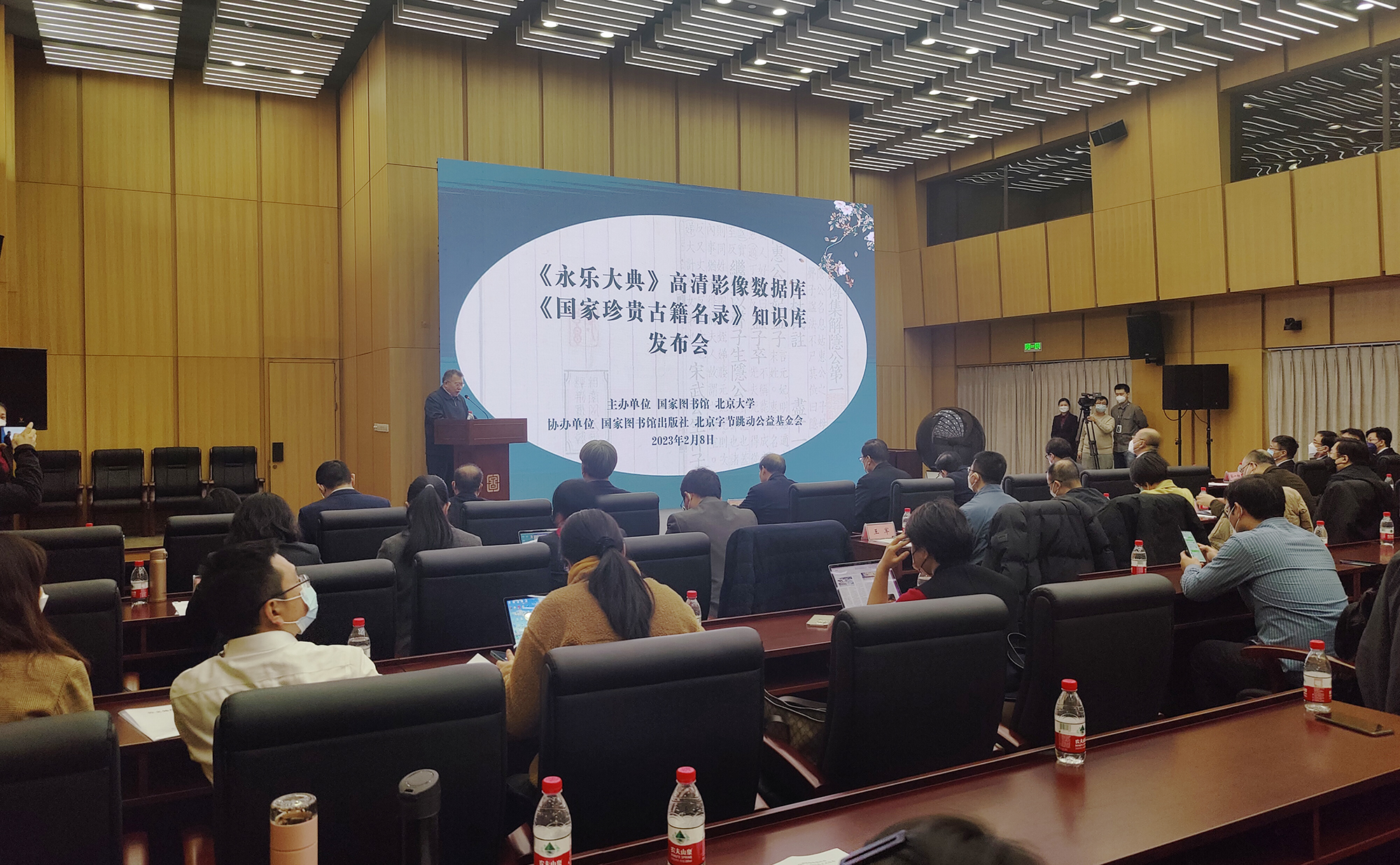 會(huì)上,饒權(quán)、馮士新分別講話,熊遠(yuǎn)明、王博先后致辭;饒權(quán)、郝平與馮士新、熊遠(yuǎn)明、李濤共同發(fā)布“《永樂(lè)大典》高清影像數(shù)據(jù)庫(kù)”及“《國(guó)家珍貴古籍名錄》知識(shí)庫(kù)”。兩個(gè)庫(kù)均為全國(guó)古籍整理出版規(guī)劃領(lǐng)導(dǎo)小組“2021年度國(guó)家古籍?dāng)?shù)字化工程專項(xiàng)經(jīng)費(fèi)資助項(xiàng)目”,于2022年11月結(jié)項(xiàng),并作為優(yōu)秀項(xiàng)目匯報(bào),讀者可以免費(fèi)登錄使用。
