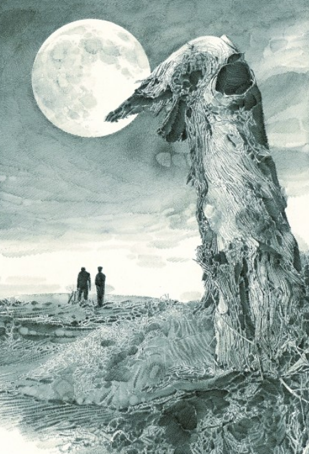 一輪滿(mǎn)月在大漠天空中懸浮著,兩個(gè)人行至遠(yuǎn)方的沙地,并肩好似在暢談著什么。刊登在《讀者》2019年第五期的這幅插圖,出自魯迅美術(shù)學(xué)院教授李晨之手,他以寫(xiě)實(shí)的素描手法為陳忠實(shí)的文章《毛烏素沙漠的月亮》配圖,畫(huà)面細(xì)膩而充滿(mǎn)想象空間。