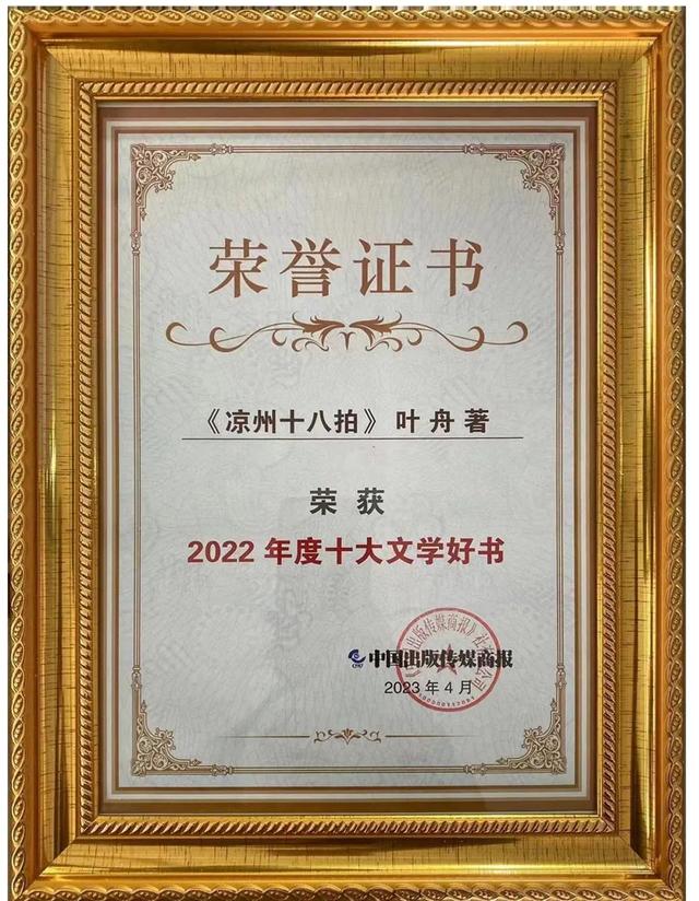 葉舟長篇小說《涼州十八拍》榮獲春風悅讀榜年度白銀獎 并入選2022年度十大文學好書
