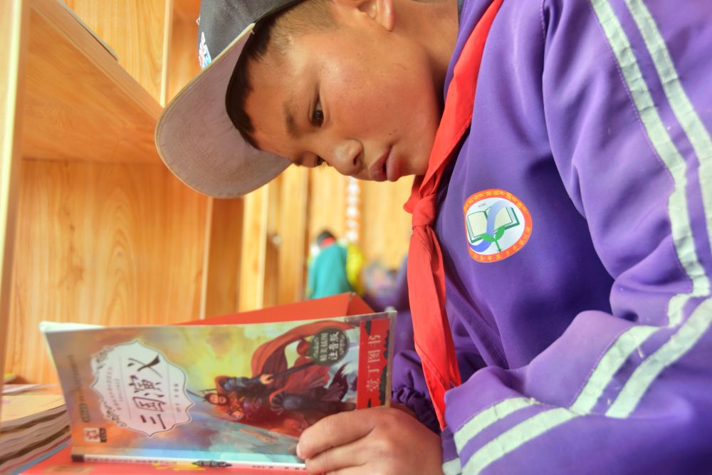格桑加措的英語老師潘紅培將圖書整理分類,她來自河南,已在申亞鄉(xiāng)小學(xué)支教兩年多。她說:“書籍是給孩子們最好的禮物,使孩子們的心靈受到滋潤、生活更加美好。有時(shí)候,他們吃飯時(shí)也要帶上書。”