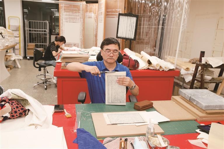 “修書就好似修心。”如今,已參加工作30多年的何謀忠剛剛接連辦理完退休、返聘手續(xù)。“這一輩子已經習慣了,最喜歡做的事就是坐下來靜靜修書,看到殘破的書葉在自己手下整理恢復,是最心情舒暢的事。當然,修書不僅是修心,還肩負著傳遞文脈、保其不朽的責任。”