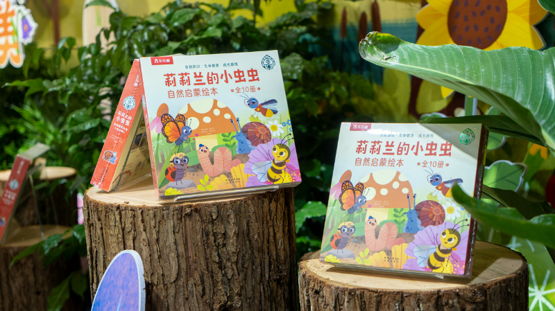 在榮信文化的展位上,也特別設(shè)置了一塊占地14平米的“莉莉蘭的小蟲蟲 沉浸式花園打卡區(qū)”,其中擺放了數(shù)十個(gè)大小不等的真實(shí)微景觀造景,編輯手工捏制了不同造型的小蟲蟲輕粘土藏身其中,吸引來(lái)來(lái)往往的孩子們駐足尋找。