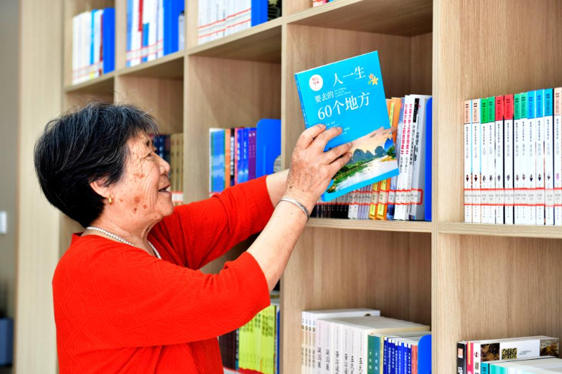 5月23日,在日照市東港區(qū)城市書(shū)房石臼所館,讀者從書(shū)架上取書(shū)。
