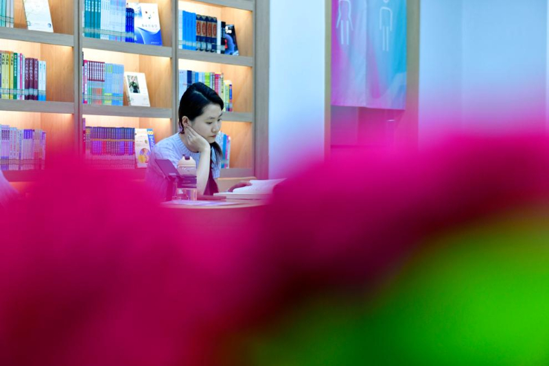 5月23日,讀者在日照市東港區(qū)城市書(shū)房櫻花園館閱讀。