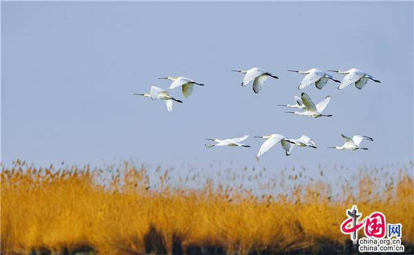 春天的沙湖,草長(zhǎng)鶯飛,萬(wàn)物復(fù)蘇,百鳥(niǎo)翔集,遠(yuǎn)處湖面上波光粼粼,在和風(fēng)的愛(ài)撫下,漾起層層漣漪。得益于優(yōu)美的自然環(huán)境以及良好的濕地生態(tài),鳥(niǎo)兒們?cè)缫堰w徙至此,成群的天鵝、白琵鷺、蒼鷺、潛鴨等眾多候鳥(niǎo)早早的抵達(dá)沙湖,或是流連嬉戲,亦或是歇腳覓食,一幅和諧美好的春日美景圖栩栩展現(xiàn)在眼前。