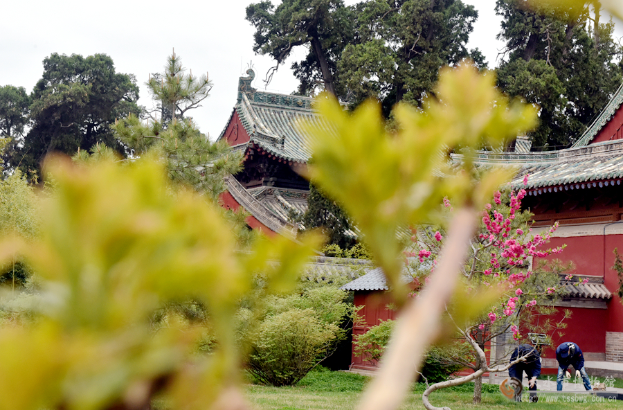 中國(guó)甘肅網(wǎng)4月16日訊 據(jù)新天水報(bào)道 4月14日,天水伏羲廟內(nèi)兩位園林工人正在后院修剪草坪花木。近日,伏羲廟內(nèi)紅色的牡丹、粉紅的桃花、綠色的繡球花盛開,一派生機(jī)盎然的景象。