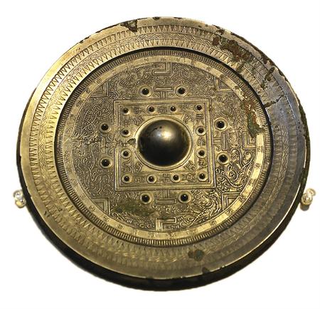 漢代設(shè)專門的機(jī)構(gòu)和官職管理銅鏡制作,有記載:“少府之下有尚方令一人,御用及官制銅鏡均由尚方制作”。所謂“規(guī)矩紋”是一種類似英文字母“T”“V”“L”的符號組成,這三種符號裝飾規(guī)整,稱之為“規(guī)矩紋”。在銅鏡之上一般還有瑞獸圖案,起到了祈福保佑的作用。
