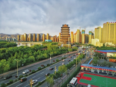 蘭州地處黃河上游,是黃河唯一穿城而過的省會城市,多年來著力打造的百里黃河風(fēng)情線,依托黃河兩岸風(fēng)光和名勝古跡,融山水、人文勝跡于一體,已成為蘭州城市名片之一。在創(chuàng)建文明城市過程中,將代表蘭州主題文化的“黃河”精神通過打造黃河風(fēng)情線為主線為城市軸線注入靈魂,不斷提升黃河風(fēng)情線文化品質(zhì),突出蘭州作為“黃河明珠”的地域特色與傳統(tǒng)文化,營造了一批富有特色和內(nèi)涵的城市標(biāo)志性景觀。圖為坐落在黃河風(fēng)情線上新建的標(biāo)志性景觀“黃河樓”。