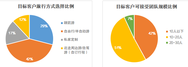 針對近五年連續(xù)兩次以上選擇跟團(tuán)游/私家定制的客戶,我們就“團(tuán)隊(duì)規(guī)模”這一問題安排專屬旅行顧問進(jìn)行二次調(diào)研。大部分客戶都表示,“帶老人和孩子出去玩,人少點(diǎn)兒大家能互相體諒”、“出去一趟不容易,人少點(diǎn)兒導(dǎo)游講的細(xì)致,也能多提問”。相關(guān)數(shù)據(jù)顯示,選擇“10人以下”的客戶占比42%,選擇“10-20人”的客戶占比51%,二者總和超過九成。由此可見,高品質(zhì)、深度游的“精致小團(tuán)”將更受青睞。