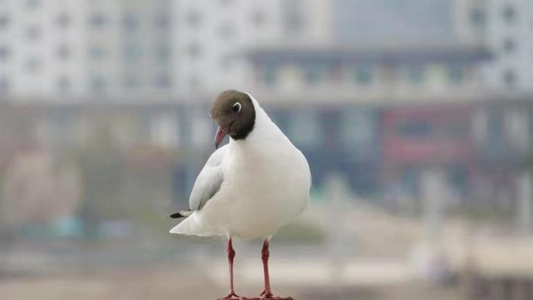 紅嘴鷗,俗稱(chēng)水鴿子,體形和毛色都與鴿子相似,嘴和腳皆呈紅色,身體大部分的羽毛是白色,尾羽黑色。紅嘴鷗喜集群,在世界的許多沿海港口、湖泊都可見(jiàn)到,多數(shù)在中國(guó)東部及北緯32度以南湖泊、河流及沿海地帶越冬。