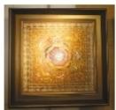 隨著對景泰藍(lán)工藝學(xué)習(xí)的深入,李海明在掐絲琺瑯上有了自己的創(chuàng)新理念,他開始潛心研究掐絲琺瑯壁畫。掐絲琺瑯壁畫工序繁多,有白描、掐絲、著色等有十道工序。“白描是掐絲琺瑯壁畫的靈魂,掐絲是骨骼,著色是血肉。每道工序都是純手工完成,制作者必須有一定的繪畫基礎(chǔ)和審美能力。”李海明說,“直到1978年,我十幾歲時(shí)跟著老師去敦煌莫高窟寫生,莫高窟壁畫的色彩深深地吸引了我。我無法形容當(dāng)時(shí)看到壁畫的感受,但那種色彩足以令我終身難忘。不知為什么,我總覺得掐絲琺瑯的色彩所表現(xiàn)出的立體感和年代感與敦煌壁畫的色彩有不謀而合之處?;诖?,當(dāng)時(shí)我開始嘗試做一些小幅的敦煌飛天琺瑯畫,很多南方朋友都特別喜歡,但因當(dāng)時(shí)的技藝有限,琺瑯畫受潮有脫落的情況……”