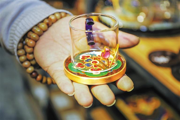 環(huán)顧李海明琺瑯?biāo)囆g(shù)館,工藝的極致與色彩的沉淀,令人震撼,在這位50多歲的中年男子的腦海里,總有新鮮的點(diǎn)子涌現(xiàn)。他告訴記者,他正在和一家古箏廠家合作,將他的琺瑯?biāo)囆g(shù)運(yùn)用于古箏這一傳統(tǒng)樂器,讓傳統(tǒng)文化融入當(dāng)代生活。