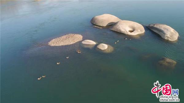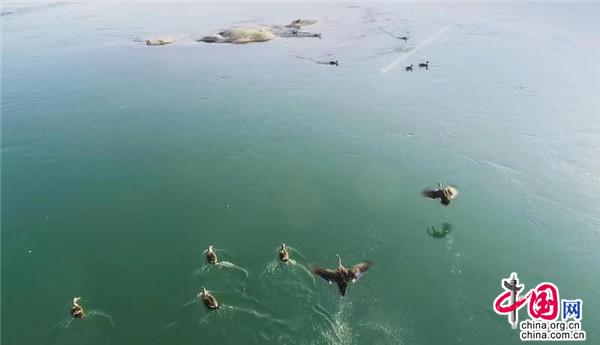 1月12日,在湖南桃江羞女湖國家濕地公園當(dāng)?shù)財(cái)z影家協(xié)會成員用無人機(jī)有幸拍到一群正在資江戲水的野生保護(hù)物種——斑嘴鴨。