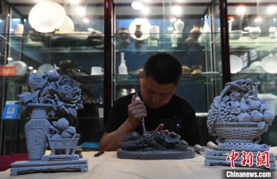 圖為甘肅臨夏藝人制作磚雕。(資料圖) 楊艷敏 攝