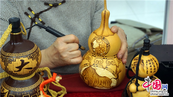 葫蘆烙畫又稱燙畫葫蘆、火筆畫葫蘆,是國(guó)家非物質(zhì)文化遺產(chǎn)。做葫蘆烙畫得用烙鐵當(dāng)筆,燒熱后在葫蘆表面熨出烙痕作畫。烙畫和葫蘆融為一體,能長(zhǎng)久保存,可以作為工藝品收藏。其中,非遺傳承人陶瑞珍的葫蘆烙畫形成了獨(dú)特的藝術(shù)風(fēng)格。