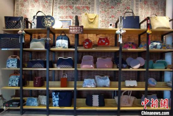 圖為祁輝純手工刺繡制作的時(shí)尚包展示?!堟?nbsp;攝