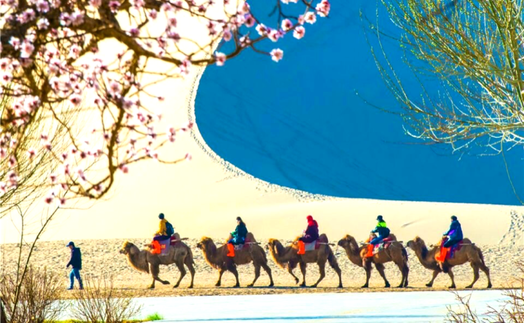 來敦煌吧,體驗一縷“走廊風(fēng)情”。“絲綢之路三千里、華夏文明五千年”。敦煌是絲綢之路黃金段河西走廊的加油站、會客廳,更是中西文明交融的橋頭堡、大觀園。這里正在加快建設(shè)“大敦煌文旅經(jīng)濟(jì)圈”。“圈”以敦煌為核、河西走廊為線,珍珠般的世界文化遺跡不勝枚舉。酒泉航天城、金昌花海、張掖丹霞、嘉峪關(guān)城樓、武威銅奔馬......你可以為自己拉個清單、畫個線路,或三五天、或半月、或浪遍整個四月天。這個長廊的西頭,就是人們鐘情的新疆,產(chǎn)著全世界最好的棉花,所有的美好觸手可及。這個長廊東頭是金城,甘肅省會、黃河之都。