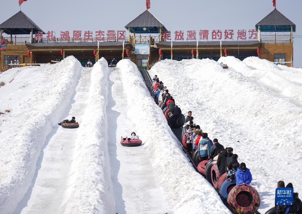 連日來,青海省互助土族自治縣威遠(yuǎn)鎮(zhèn)的卓扎灘原生態(tài)景區(qū)吸引眾多游客前來體驗冰雪項目的樂趣。