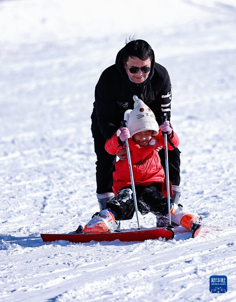 2月19日,在寧夏銀川市閱?;﹫?chǎng),一名家長(zhǎng)帶著孩子玩耍。