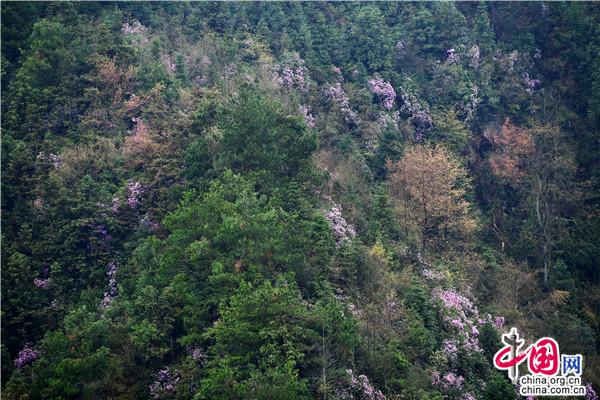 春天的穿巖山國(guó)家森林公園,漫山花開(kāi),層林盡染春色。這時(shí)候的野櫻花、野杜鵑、野映山紅竟相綻放,條條游步道宛如一條條花帶,帶著生機(jī)勃勃和滿(mǎn)天飄舞的芳香,讓游人心曠神怡。走在一條條蜿蜒的棧道,鮮氧環(huán)伺,鼻息間盡是春風(fēng)吹來(lái)的清新氣息。這里人文歷史與自然美景交融,既可在蜿蜒的茶馬古道,重走紅軍路,感受偉大的革命精神,又可在越河而建、凌空百丈的5D玻璃橋體驗(yàn)漫步云端的驚險(xiǎn)刺激,還可在寧?kù)o愜意的云端古村落,感受淳樸的民風(fēng)和歷史悠長(zhǎng)的農(nóng)耕文化奇葩。早晨的日出云海,中午的藍(lán)圖白云,下午的燦爛夕陽(yáng),鮮花與藍(lán)天、彩霞相映,讓人流連忘返。漫山遍野的綠意間,成團(tuán)櫻花、杜鵑、映山紅等夾雜其中,或粉紅或雪白,或紫色或丹紅,密密匝匝開(kāi)滿(mǎn)枝頭。由于雪峰山景區(qū)的落差較高,從300米到1500米,櫻花期、杜鵑花期、映山紅花期交錯(cuò),成梯級(jí)往山背梯田景區(qū)、虎形山大花瑤綻放開(kāi)來(lái),讓賞花期能長(zhǎng)達(dá)2、3個(gè)月之久。