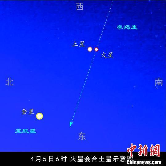 據(jù)廣州市五羊天象館1日透露:今年4月5日,將出現(xiàn)火星會(huì)合土星的天象奇觀,奇在二者相距很近,“擦肩而過”的距離之短,為44年來之冠。如果天色晴朗,不僅中國各地可看到,而且?guī)缀跏澜绺鞯兀ū睒O地區(qū)除外)都可看到。