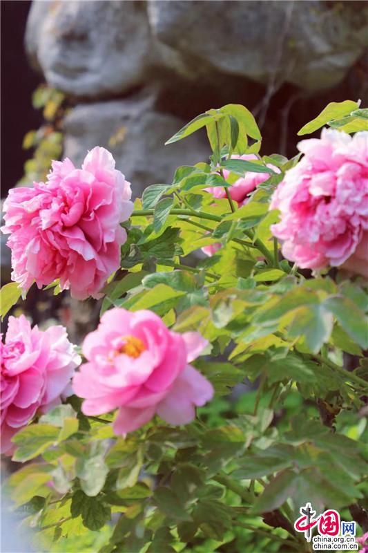 “國(guó)色鮮明舒嫩臉,仙冠重疊剪紅云”。北宋范純?nèi)室?ldquo;仙冠”吐露牡丹之絕艷,即是春日的機(jī)緣促成的繁華與熱烈。重瓣牡丹更是醉馨自然,光灑在其上如透亮的粉晶般耀眼,翠綠有心添一抹“怒”放的生機(jī),無論深紅淺紅俱是春日的盛情。
