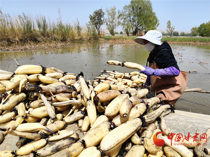近日,記者來到榆中縣青城鎮(zhèn)東灘村,在青城五良養(yǎng)殖場,記者看到不遠處的池塘里,村民們正在采收蓮藕,魚塘中的鯉魚拍打著水花,成群結(jié)隊搶食……一幅熱鬧豐收的圖景躍然眼前。