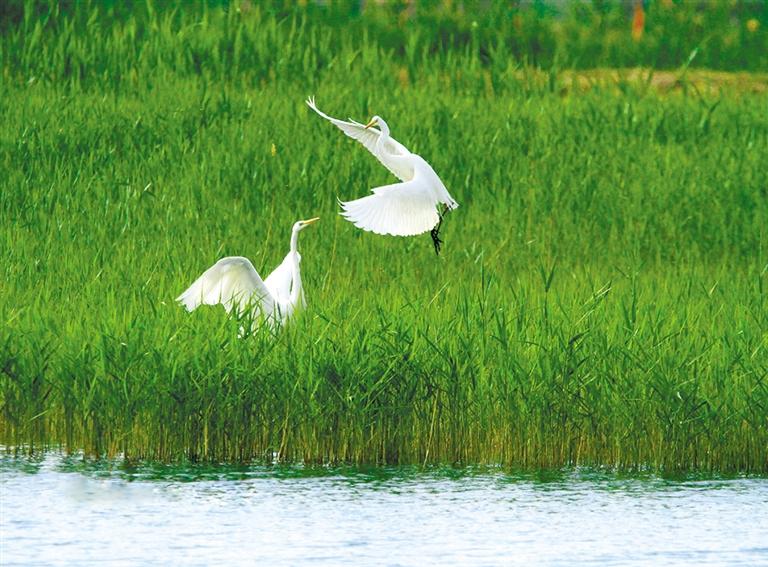 初夏張掖濕地:蘆葦青青 白鷺蹁躚