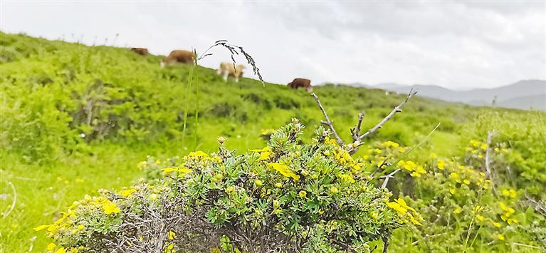 積石山縣黃草坪被譽(yù)為“原生態(tài)旅游的樂(lè)園”,是我州旅游大通道上的又一處絕美風(fēng)景。圖為6月12日,隨著金露梅的盛開(kāi),該景區(qū)迎來(lái)大批游客,人們置身其中,盡享大自然的饋贈(zèng)。