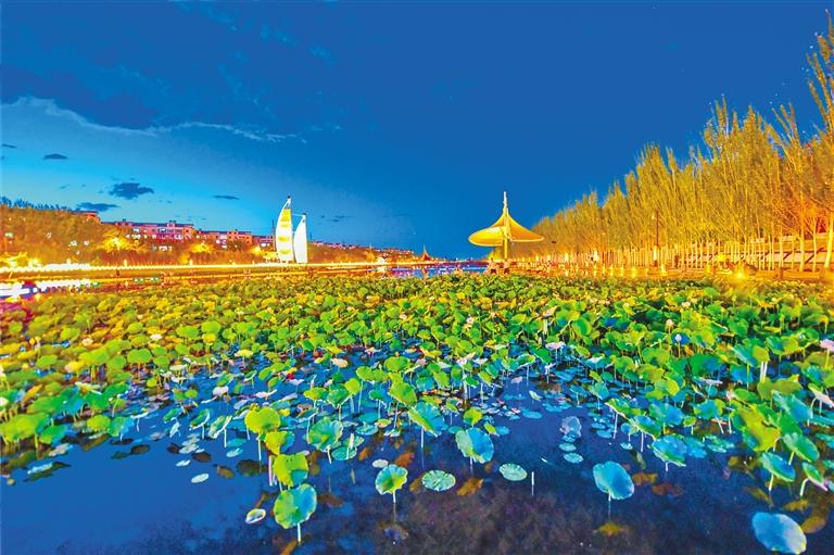 敦煌大漠荷花盛開。奔流新聞·蘭州晨報(bào)通訊員 王斌銀 攝
