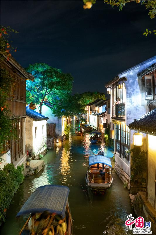 宋朝時(shí)候,宵禁解除,每至深夜,燈火通明。如今周莊的夜色,亦是在光影中沉醉,水影搖曳間,畫船枕眠。這里,可以陽春白雪,不食煙火;也可以徹夜不歇,最懂人間。這場周莊的溫柔夢,將一直編織下去……澤國溫柔的清風(fēng),夜間可愛的彎月,若能與你共賞,那便再無遺憾。歌里唱,不懼怕,天涯路長,甘為你,披滿身風(fēng)霜,請君,入夢。(尤紫璇 周宣)