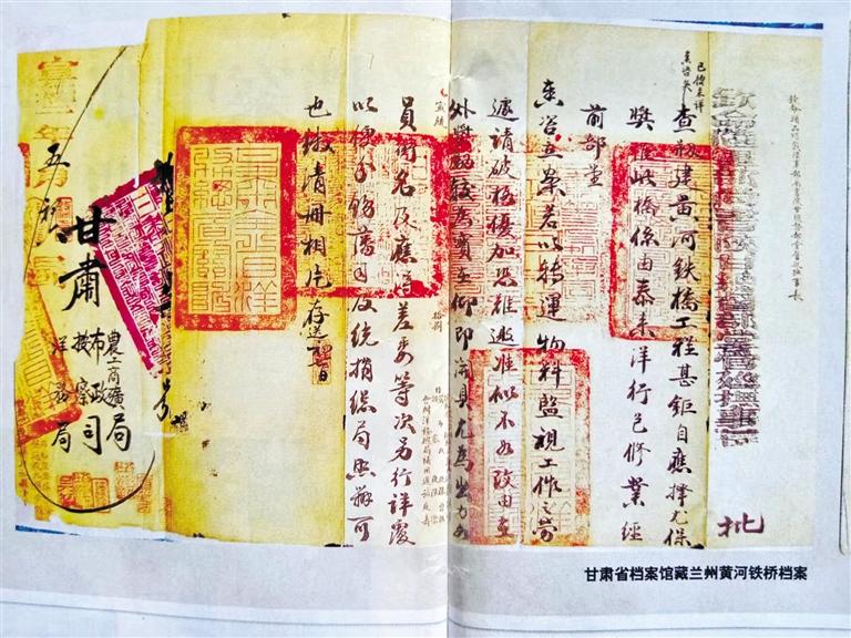 在古金城蘭州架設(shè)橫跨于黃河南北兩岸的鐵橋,曾是左宗棠的夢想,只因當時洋商索價過高而作罷。30年后,正值清末實行新政,黃河鐵橋在陜甘總督升允和彭英甲的任上創(chuàng)修成功。建橋過程慘淡經(jīng)營,艱苦備至,已人所共知。好在建設(shè)黃河鐵橋形成的檔案,歸檔于甘肅農(nóng)工商礦總局,沒有存于當時的布政使司,幸運地躲過了民國二年那一劫。甘肅農(nóng)工商礦總局后更名為甘肅省署實業(yè)廳,民國十六年(1927年)甘肅省政府改實業(yè)廳為建設(shè)廳,這些檔案存于建設(shè)廳。1949年7月,國民黨甘肅省政府逃離前發(fā)出緊急命令:“轉(zhuǎn)移前將政府檔案做緊急處理”,重要檔案進行“焚毀、埋藏、轉(zhuǎn)移”,次要檔案“從速列冊銷毀”。只因倉皇逃離,未來得及銷毀。人民解放軍從解放蘭州的戰(zhàn)火中把包括鐵橋檔案在內(nèi)的許多檔案搶救出來,由蘭州軍管會接管。2002年,《蘭州黃河鐵橋檔案》入選首批《中國檔案文獻遺產(chǎn)名錄》。