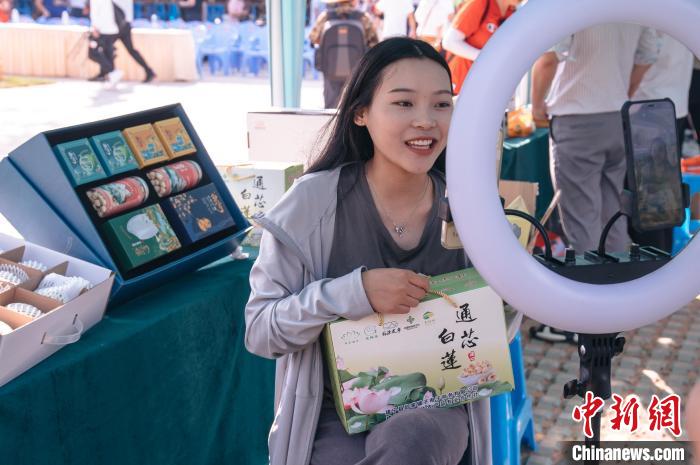 主播現場直播帶貨,銷售建蓮。 李南軒 攝