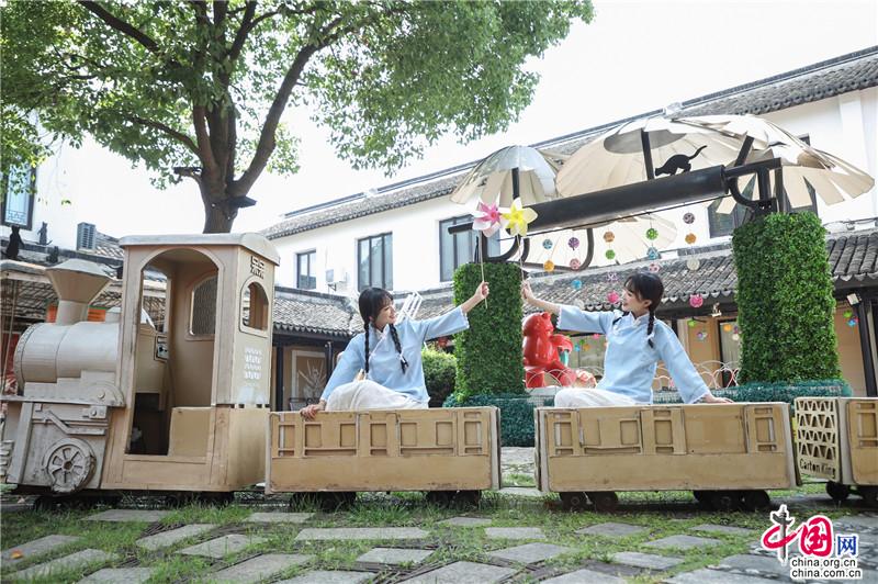 夏日遲遲至,古鎮(zhèn)緩緩行。坐一趟手搖船,穿行在23°的水巷,看陽光透過樹影落在水面上的斑駁,聽搖櫓聲聲撥動(dòng)碧水的悠然,悄然經(jīng)過匆匆那年。赴一場(chǎng)紙箱王之約,穿梭在紙藝王國(guó),吃一頓盈滿時(shí)光的紙上美食。坐上紙做的小火車放飛夢(mèng)想,在紙箱王古郵局描繪出未來的藍(lán)圖。行走在貞豐文化街上,看貞豐十二坊的匠人匠心,觀水鄉(xiāng)周莊的人間煙火。走累了便去蘇繡藝舍感受蘇繡的獨(dú)特魅力,到爐韻沉香研習(xí)香道茶藝……一盞清茶一爐香,一衣帶水歸故鄉(xiāng)。