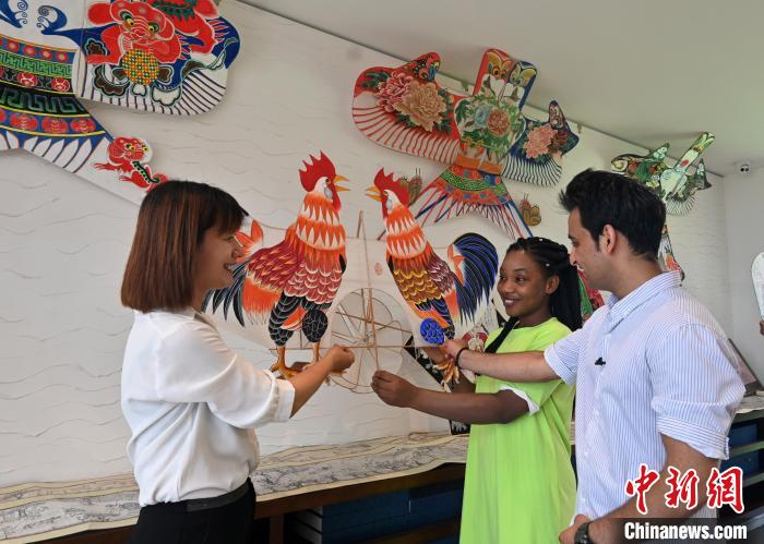 中新網(wǎng)廊坊7月21日電 (李玉素 宋敏濤)21日,來自河北師范大學(xué)的尼日利亞籍留學(xué)生馬臻和巴基斯坦籍留學(xué)生烏瑪爾,來到河北省廊坊市安次區(qū)第什里風(fēng)箏小鎮(zhèn),體驗(yàn)中國傳統(tǒng)的風(fēng)箏文化。