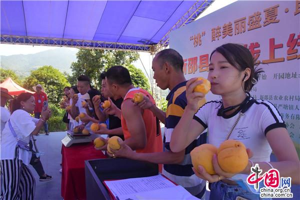活動(dòng)中,還開展了 “最大桃王”“最甜桃后”評(píng)比和吃黃桃比賽,將現(xiàn)場(chǎng)氣氛推向了高潮。活動(dòng)最后,還開啟了2022年新邵縣“新邵資味”農(nóng)特產(chǎn)品短視頻暨直播大賽。