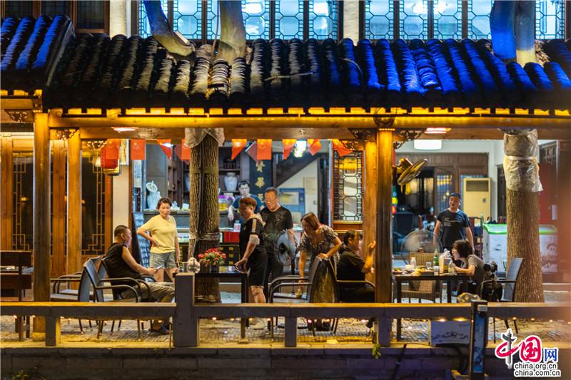 歸來小鎮(zhèn),夜色燈火閃爍搖曳,廊亭中清風(fēng)肆意流連,明月照進(jìn)街巷里弄,清涼夜周莊,是夏日里的烏托邦。小橋流水與青磚黛瓦交錯(cuò)成景,輕姿漫步看兩岸燈影交錯(cuò);成蔭的綠意里畫著水色繾綣,抬眸皆是神來之筆。夏夜的煙火人間里,是迷人而慵懶的江南底色。