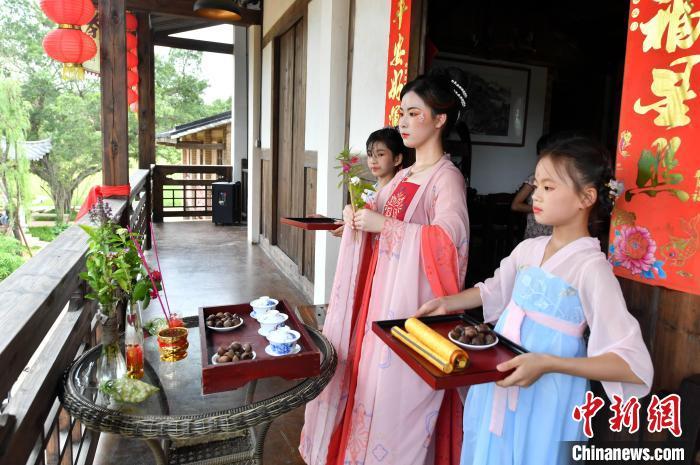 資料圖:圖為身著漢服的姑娘們展現(xiàn)了屬于七夕最傳統(tǒng)的節(jié)日文化內(nèi)容——祭星乞巧。中新社記者 劉可耕 攝