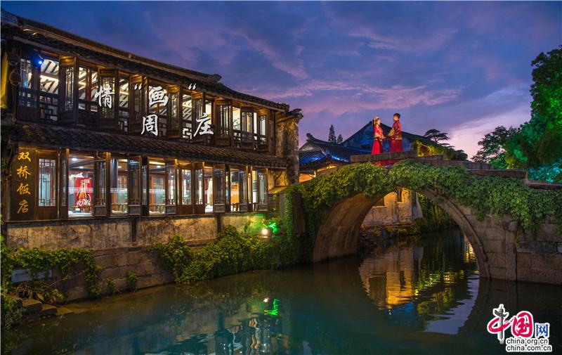 鵲橋連相思,杯酒寄濃情。像晚風輕輕吹動月牙,溫吞世俗人間煙火,那些關于江南的心事都藏于周莊的夜色里。日暮銀河,別在夢里,何不趁夜色,遍游周莊,愈夜愈周莊。