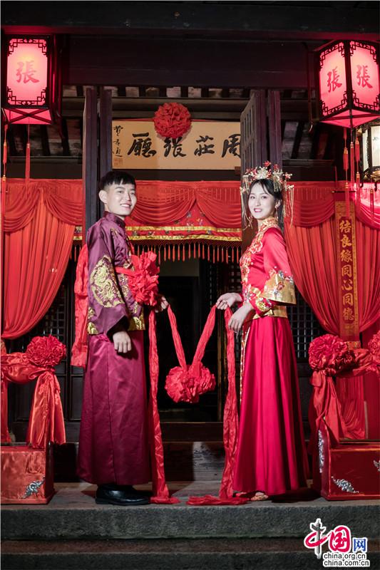 洞房花燭夜,人生樂事,恰逢七夕,張廳夜囍。張廳迎囍,廳堂結(jié)紅彩。花好月圓,洞房花燭,伊人蛾眉皓齒,融入千年文化傳承的夜色時光。水鄉(xiāng)傳統(tǒng)婚典,見證著獨屬于古韻江南的浪漫。