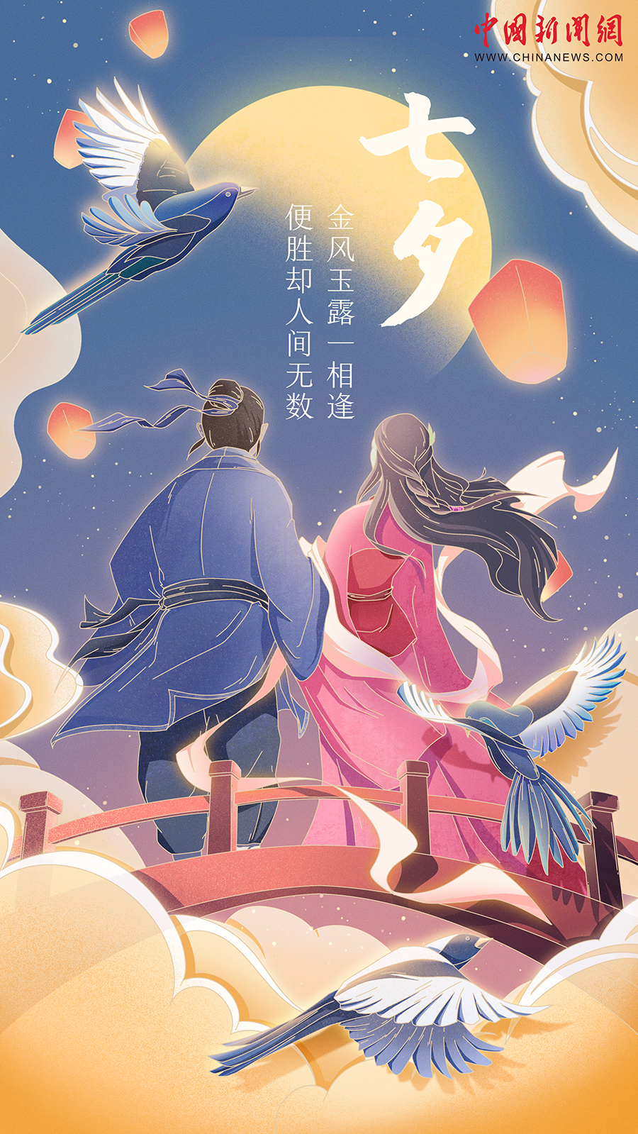 農(nóng)歷七月初七,七夕節(jié),一個洋溢著浪漫氣息的中國傳統(tǒng)節(jié)日。小時候,它是奶奶、外婆口中動人的美麗傳說;上學(xué)時,它是課本里讓你感嘆的課文、詩詞與插畫;長大后,它是你與那個人最在乎的特殊日子之一。雙向奔赴的歡喜,轟轟烈烈的告白,平凡溫暖的陪伴,一起變老的誓言……