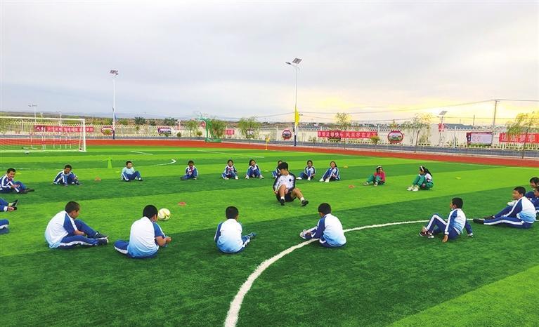 足球教練指導古浪縣富民新村小學球員。