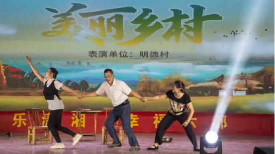 明德村打造“最美瀟湘文化陣地”美名遠揚,為明德村“文化服務走出去”打下了堅實基礎。村里的文藝團隊除了義務服務外,平時還經常應邀到其他外村表演,獲取點額外收入。村支兩委乘勢而上,把文化優(yōu)勢變成產業(yè)優(yōu)勢,把文化產業(yè)變?yōu)榇迕裰赂坏?ldquo;法寶”與鄉(xiāng)村振興的“加速器”。