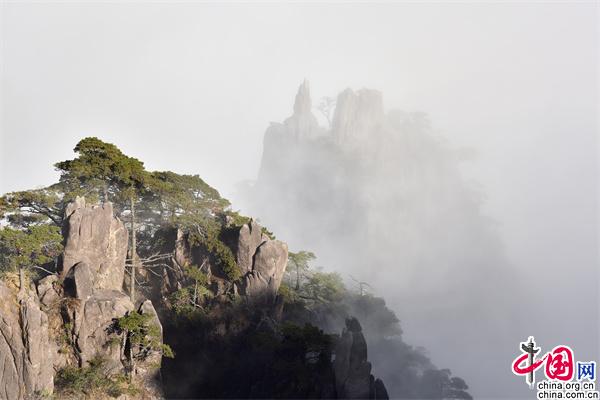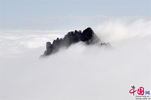 11月23日下午,安徽黃山風景區(qū)雨后放晴,山巒之中,云海彌漫,縹緲無形,奇松、怪石和群峰在的云海間時隱時現(xiàn),亦夢亦幻。