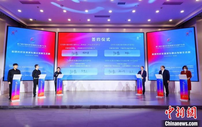 會上,嘉賓們共同見證了共建中國紡聯(lián)非遺辦長三角地區(qū)工作站合作簽約、紡織非遺出版?zhèn)髅胶献骱灱s、紡織非遺標(biāo)準(zhǔn)化合作簽約、紡織非遺京津冀協(xié)同發(fā)展戰(zhàn)略合作簽約、昆曲《御題棉花園》項(xiàng)目啟動簽約、我家的毛巾會唱曲兒授權(quán)合作簽約、共建河北大學(xué)高陽文化研究中心合作簽約等多項(xiàng)合作的達(dá)成。舉辦了中國紡織非遺推廣大使“推進(jìn)城鄉(xiāng)融合發(fā)展、全面實(shí)現(xiàn)鄉(xiāng)村振興”倡議行動。