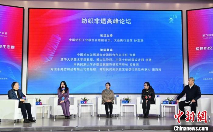 中國婦女發(fā)展基金會國際合作辦主任張蕾,清華大學(xué)美術(shù)學(xué)院教授、中國十佳時(shí)裝設(shè)計(jì)師李薇,中央民族大學(xué)少數(shù)民族服飾研究所所長祁春英,河北永亮紡織品有限公司總經(jīng)理、高陽民間染織技藝省級代表性傳承人田海濤等分享了各自在紡織非遺方面的實(shí)踐故事。