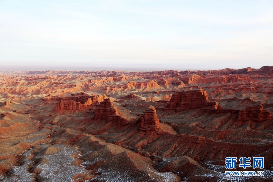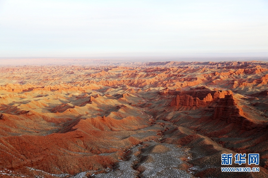 1月1日清晨,甘肅張掖平山湖大峽谷景區(qū)雪后初霽、群峰聳立,在新年朝陽的照耀下更顯雄渾壯觀。新華網(wǎng)發(fā)(成林 攝)