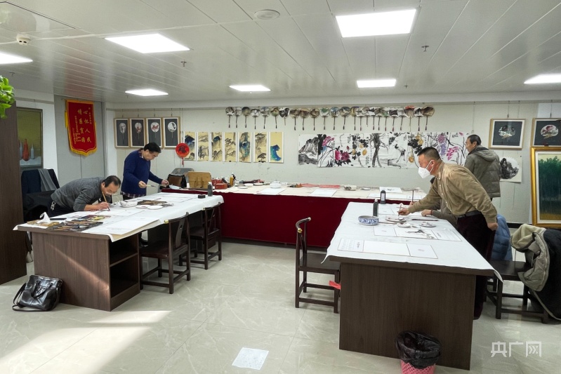 市民在美術(shù)館內(nèi)進(jìn)行書畫創(chuàng)作(央廣網(wǎng)發(fā) 慶陽市委宣傳部 供圖)
